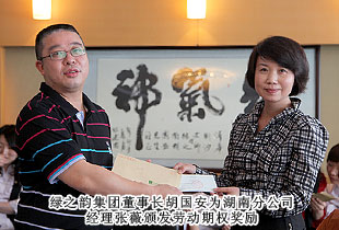 引入“員工勞動期權”這一概念,并付諸于千金一諾的主動性企業(yè)行為,是綠之韻集團在其發(fā)展過程中區(qū)別于其他企業(yè)的顯著標志,全面推動著“綠之韻夢”從夢想照進現實的歷史進程。2013年5月6日下午,綠之韻集團綠之韻2013年第一季度市場工作匯報暨2012年度勞動期權獎金頒發(fā)儀式成功舉行。綠之韻集團董事長胡國安、董事常務副總裁勞嘉、執(zhí)行總經理龔振、財務總監(jiān)劉淑娟、市場營銷中心(中國區(qū))業(yè)務總經理何健、市場營銷中心(中國區(qū))副總經理諶獻軍、市場營銷中心(中國區(qū))市場運營總監(jiān)陳晨、綠之韻國際商學院院長蔣林翰、市場營銷中心營銷副總裁李繼前及2012年度勞動股份期權獲獎員工共計35人出席本次會議。會議由綠之韻集團董事、常務副總裁勞嘉主持。