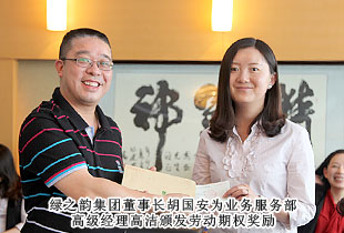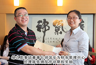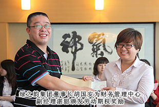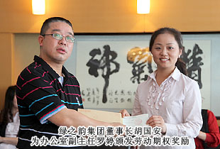 “綠之韻模式”的勞動股份期權獎勵機制,始于2011年,分為勞動股份期權(三年期)和勞動股份期權(五年期)兩種形式,兌付方式分為一次性兌付和逐年兌付兩種方式,開創(chuàng)了直銷企業(yè)主動將企業(yè)價值與普通員工共享的里程碑式先河。在2012年度勞動期權獎金頒發(fā)儀式上,在全場熱烈的掌聲中,綠之韻集團胡國安董事長親自為24位勞動期權獲獎員工頒發(fā)了獎勵支票,并一一合影留念。胡國安董事長在頒獎儀式上指出:中國夢、綠之韻夢歸根結底是所有人的夢,“綠之韻夢”的重要內涵就是要讓每一位綠之韻人共同享有夢想成真的機會,共同享有同時代和綠之韻一起成長與進步的機會,共同享有榮耀和人生出彩的機會。胡國安董事長進一步強調,在綠之韻事業(yè)中,每一位員工的崗位不同、職責不同、貢獻不同,但都是“綠之韻夢”的筑夢人和受益者。筑夢人和受益者,包含著兩個層面交相融匯、榮辱與共的深刻涵義:所謂“筑夢人”,就是綠之韻夢可以分解為每一位綠之韻人的夢。每一位綠之韻人只有將個人的夢想融入綠之韻事業(yè)中,才能最終走向成功,尊享榮耀。由此,每一位綠之韻人必須珍惜韶華、奮發(fā)有為,勇做奮進者、開拓者和奉獻者,為實現綠之韻夢付出智慧和力量;所謂“受益者”,就是綠之韻被偉大時代所賦予的歷史使命就是“員工富裕、企業(yè)興旺、社會和諧”,要為員工、為更多的人謀福利、造福祉,讓員工、讓更多人共享人生出彩的機會。目前,不論是公司現有十三大福利獎勵,還是勞動期權獎勵機制,綠之韻就是要讓每一位員工都能感受到自己就是綠之韻血脈相連的利益共同體,都能分享到企業(yè)發(fā)展成果的激動和欣慰。這是綠之韻感情所系,也是綠之韻責任所在!