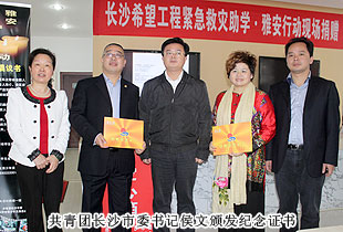 共青團長沙市委副書記喻志軍,長沙市青少年發(fā)展基金會理事長羊舒麟等領(lǐng)導(dǎo)和嘉賓,一同參加了本次救災(zāi)助學捐贈儀式。