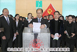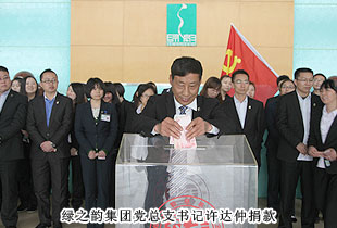愛是世界上最美的語言,行動是對生命最大的敬畏。綠之韻集團繼4月21日通過湖南省光彩基金促進會、長沙光彩事業(yè)促進會向四川雅安災(zāi)區(qū)緊急捐贈第一筆300萬元人民幣愛心款項后,又于4月22日下午繼續(xù)愛心的接力,組織集團總部及綠之韻國際大酒店貴賓樓的全體員工向災(zāi)區(qū)捐款。綠之韻集團董事常務(wù)副總裁勞嘉、綠之韻集團(中國區(qū))執(zhí)行總經(jīng)理龔振、綠之韻集團黨總支書記許達仲等集團高管帶頭通過現(xiàn)金或愛心認捐書的方式向災(zāi)區(qū)進行愛心募捐。