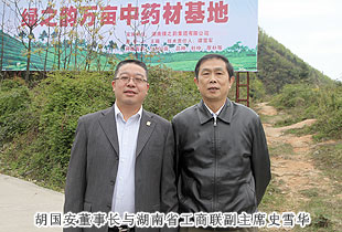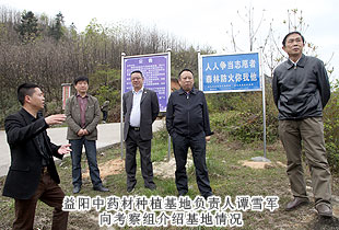 2013年4月13日,為深入了解湖南省“萬企聯(lián)村?共同發(fā)展”30個(gè)省級優(yōu)秀示范項(xiàng)目之一的——綠之韻益陽安化萬畝中藥材種植基地建設(shè)情況,湖南省工商聯(lián)副主席史雪華、湖南省工商聯(lián)扶貧處處長甘露、會(huì)員處處長謝明亮、副處長張耿、中共湖南省委統(tǒng)戰(zhàn)部經(jīng)濟(jì)處副處長周桂忠一行赴綠之韻安化萬畝中藥材基地實(shí)地考察。中共安化縣委常委、政法委書記羅必勝,安化縣冷市鎮(zhèn)鎮(zhèn)長周華山,湖南省政協(xié)委員、省工商聯(lián)常委、長沙市工商聯(lián)副主席胡國安陪同考察。