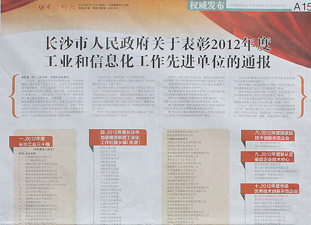 2013年3月12日,長沙市工業(yè)和信息化工作暨第二屆企業(yè)技術(shù)創(chuàng)新大會(huì)在市政府召開,綠之韻集團(tuán)作為獲獎(jiǎng)企業(yè)受邀出席了此次會(huì)議。