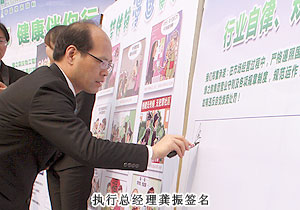 2013年,是綠之韻集團(tuán)創(chuàng)立十周年,也是品牌和服務(wù)競(jìng)爭(zhēng)加劇的一年,更是思想上同心同德、目標(biāo)上同心同向、行動(dòng)上同心同行的關(guān)鍵之年。在現(xiàn)場(chǎng)觀眾目光的凝視下,綠之韻集團(tuán)執(zhí)行總經(jīng)理龔振帶領(lǐng)公司高管和廣大經(jīng)銷商在《行業(yè)自律、規(guī)范經(jīng)營(yíng)承諾書》展板上簽名,自愿承諾:“在市場(chǎng)經(jīng)營(yíng)過程中,嚴(yán)格遵照國(guó)家相關(guān)法律、法規(guī)進(jìn)行合法經(jīng)營(yíng),堅(jiān)決遵照?qǐng)?zhí)行《綠之韻集團(tuán)營(yíng)業(yè)守則》及各項(xiàng)規(guī)章制度,規(guī)范運(yùn)作;堅(jiān)決杜絕一切破壞市場(chǎng)良性經(jīng)營(yíng)的違規(guī)行為,如有違反自覺接受處罰!”莊嚴(yán)承諾激蕩人心,有條不紊的簽名行動(dòng)充分展示出全體綠之韻人對(duì)市場(chǎng)規(guī)范經(jīng)營(yíng)的決心,給予了市場(chǎng)穩(wěn)健發(fā)展強(qiáng)大的動(dòng)力,讓廣大消費(fèi)者充分感受民族直銷企業(yè)高度的公信力和社會(huì)責(zé)任感。