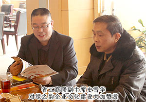 在深入親切的交談中,省工商聯(lián)扶貧處處長甘露指出,多年來綠之韻集團在發(fā)展壯大企業(yè)的同時帶動社會就業(yè)創(chuàng)業(yè),關注公益慈善、扶貧助困事業(yè);發(fā)布企業(yè)社會責任報告,倡導并履行主流的社會價值觀念和道德理想,在為社會創(chuàng)造價值的同時,承擔起企業(yè)社會責任,為新一代成長型企業(yè)做好了示范、樹立了榜樣。希望綠之韻以十周年為契機,再接再厲,不懈努力,用新的發(fā)展、新的業(yè)績?yōu)楹鲜〗?jīng)濟社會發(fā)展作出更大的貢獻。