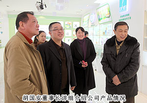 2013年1月18日下午,湖南省工商聯(lián)副主席史雪華、省工商聯(lián)扶貧處處長甘露一行蒞臨綠之韻集團考察指導工作。在視察過程中,綠之韻集團董事長胡國安、董事常務副總裁勞嘉陪同領導參觀了綠之韻集團總部,從綠之韻多功能產(chǎn)品形象展示廳、到黨建工作宣傳欄、再到企業(yè)榮譽墻,胡國安董事長仔細介紹,省工商聯(lián)副主席史雪華一行時而駐足,時而詢問,頻頻點頭以示肯定和贊許。