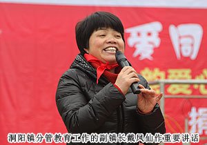 捐贈儀式上,洞陽鎮(zhèn)分管教育工作的副鎮(zhèn)長戴鳳仙作了重要講話,她稱贊綠之韻是愛心的傳遞者和溫暖的奉獻(xiàn)者。并感謝綠之韻集團(tuán)長期以來對洞陽鎮(zhèn)教育事業(yè)無盡的關(guān)心和支持,對學(xué)生真誠的關(guān)愛和幫助。同時,她呼喚更多的企業(yè)家和愛心人士關(guān)注貧困學(xué)生、關(guān)注洞陽教育事業(yè),勉勵學(xué)子們要把愛心人士的這份關(guān)懷化作學(xué)習(xí)中的不竭動力,學(xué)有所成,奮發(fā)圖強(qiáng),盡自己最大的能力回報社會!