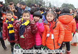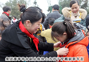 隨后,綠之韻集團(tuán)董事、常務(wù)副總裁勞嘉和綠之韻20名愛心經(jīng)銷商、愛心慈善大使一起為貧困學(xué)生們穿上嶄新的冬衣、發(fā)放學(xué)習(xí)用品。盡管操場上寒風(fēng)簌簌,可領(lǐng)取到滿載著愛心的嶄新冬衣后,孩子們每個人的臉上都綻放出著歡樂和幸福的笑容。綠之韻濃縮著溫情的冬衣帶給莘莘學(xué)子的不只是暖意,在這樣一個充滿著奉獻(xiàn)與感恩的冬天,更多的愛心正在萌發(fā)、生長和茁壯。