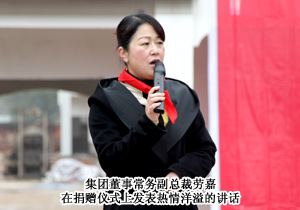 洞陽鎮(zhèn)矮橋小學(xué)蘇敏莊校長在捐贈儀式上致感謝辭,他首先代表學(xué)校全體師生,對綠之韻集團(tuán)捐贈課桌椅和御寒衣服的仁義大愛表示衷心的感謝。他說,我是今年下半年才來到矮橋小學(xué)的,在接到任命之前,沒來過這所學(xué)校,當(dāng)來到這里后,我被這個學(xué)校的陳舊所震撼。看到這些,我都想退出,可退出只能當(dāng)想法,唯一的辦法就是全身心的投入工作,把學(xué)校建設(shè)好,并呼吁匯集社會力量捐資助學(xué),興資辦學(xué)。綠之韻集團(tuán)董事長胡國安先生、董事常務(wù)副總裁勞嘉女士,他們是具有遠(yuǎn)見卓識而又充滿博愛心腸的慈善企業(yè)家。綠之韻集團(tuán),由小而大,聲譽日隆,這固然和他們先進(jìn)的經(jīng)商理念相關(guān),但我覺得這更和他們心宅仁厚,廣結(jié)善緣密不可分。綠之韻集團(tuán)對我校捐贈桌椅、衣物、學(xué)習(xí)用品等物資,施以援手,奉獻(xiàn)愛心,直接受益的是我的學(xué)生們,直接受益的是洞陽鎮(zhèn)教育事業(yè)。作為一校之長的我,更要勤奮工作,不辜負(fù)綠之韻集團(tuán)和社會各界對矮橋小學(xué)的厚望,創(chuàng)造出更加輝煌的業(yè)績。