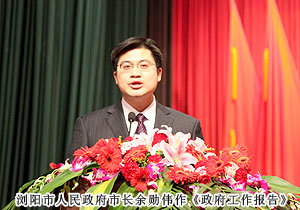 瀏陽市人民政府市長余勛偉向大會作《政府工作報告》。對過去五年政府工作進行了回顧總結(jié)后,余勛偉表示,今后五年將是瀏陽跨越發(fā)展的戰(zhàn)略機遇期,是全面建成小康社會的關(guān)鍵時期。瀏陽融城對接、開放帶動的區(qū)位優(yōu)勢日漸凸顯;多點支撐的發(fā)展平臺和多極帶動的產(chǎn)業(yè)集群初具雛形;全市上下勵精圖治、奮發(fā)圖強的干事創(chuàng)業(yè)氛圍日益濃厚。未來五年的發(fā)展愿景是:經(jīng)濟實力大增強,到2017年,實現(xiàn)地區(qū)生產(chǎn)總值1400億元,財政總收入120億元,市域經(jīng)濟基本競爭力挺進全國三十強,城市格局大改觀,城鄉(xiāng)面貌大變樣,幸福指數(shù)大提升,推進基本公共服務(wù)均等化,朝共同富裕的方向穩(wěn)步前進。