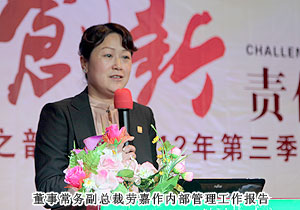 市場是綠之韻賴以生存的基礎(chǔ),健康持續(xù)是綠之韻發(fā)展的目標(biāo),安全穩(wěn)定是綠之韻管理的要求。會議上,綠之韻集團(tuán)常務(wù)副總裁勞嘉等全體高管分別從各自分管領(lǐng)域,針對第三季度工作進(jìn)行了回顧和總結(jié),并在接下來工作部署中表示,要真正領(lǐng)會企業(yè)的“競合”精神,進(jìn)一步增強(qiáng)創(chuàng)新意識、發(fā)展意識、憂患意識和服務(wù)意識,在第四季度重點(diǎn)抓好業(yè)績沖刺工作、綠之韻九周年年會工作以及明年發(fā)展制定工作計劃。同時,綠之韻集團(tuán)六位分公司經(jīng)理也專程從湖南、內(nèi)蒙古、河北、遼寧、黑龍江、吉林奔赴長沙出席本次會議,他們帶來了各區(qū)域市場一線最前沿的情況,并就各分公司業(yè)績、內(nèi)部管理、市場環(huán)境等情況做出了詳細(xì)匯報。“種下梧桐樹,引得鳳凰來”,隨著綠之韻的不斷壯大,越來越多的新鮮力量不斷加入。會議上,張潔等8位新同事在進(jìn)行自我介紹時都表示,入職以來深深感受到綠之韻企業(yè)文化的吸引力,在未來的日子會發(fā)揮自己所長,與綠之韻共同成長。