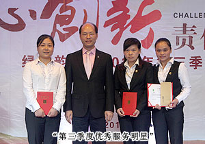豐富的集體活動,不但充實(shí)了員工的業(yè)余生活,給綠之韻人帶來了歡樂、健康與正能量,更增強(qiáng)了綠之韻團(tuán)隊的凝聚力與戰(zhàn)斗力。羽毛球比賽已經(jīng)成為綠之韻的經(jīng)典傳統(tǒng)活動,綠之韻集團(tuán)第五屆羽毛球賽經(jīng)過激烈的角逐圓滿的落下帷幕。會上,綠之韻集團(tuán)董事常務(wù)副總裁勞嘉為獲得冠亞季軍的運(yùn)動健兒和優(yōu)秀集體頒獎。敢于拼搏、決不放棄、力拼到底的精神,是綠之韻人的賽場精神,更是綠之韻人的工作精神。為了市場精英能毫無后顧之憂的在一線沖鋒陷陣、開疆拓土,后勤人員勤勤懇懇、兢兢業(yè)業(yè)用心服務(wù)。來自財務(wù)部的周瑛、結(jié)算中心的章珍、業(yè)務(wù)服務(wù)部的楊婷被評為2012年第三季度服務(wù)明星,人力資源部被評為2012年第三季度優(yōu)秀服務(wù)集體。會上,綠之韻執(zhí)行總經(jīng)理龔振為服務(wù)明星頒獎。