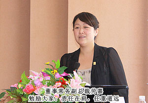 前方市場群雄角逐,后方保障堅實有力。“五心服務(wù)”是綠之韻人的服務(wù)宗旨,每一個綠之韻人都是它的踐行者,也是收獲者,此次會議,綠之韻集團(tuán)審計部、產(chǎn)品綜合管理部分別被評為一、二季度的“優(yōu)秀服務(wù)集體”;業(yè)務(wù)服務(wù)部楊恬、財務(wù)部紀(jì)海霞、張尚和教培訓(xùn)部陳敏分別被評為一、二季度“服務(wù)明星”。同時,綠之韻集團(tuán)辦公室副主任馬曉玉代表集團(tuán)董事會宣讀“勞動股份期權(quán)”嘉獎令,李定、楊穎、陳英、張薇榮獲“綠之韻集團(tuán)2012年度勞動股份期權(quán)(五年期)特別嘉獎”;譚紅、湛甜、王薇、羅嬋、趙蕾、彭興、宋沂芳、李曉麗、羅婷、陳敏榮獲“綠之韻集團(tuán)2012年度勞動股份期權(quán)(三年期)特別嘉獎”。“勞動股份期權(quán)”不僅一份獎勵,更是一份至高的榮譽,同時,它也體現(xiàn)了胡國安董事長博大的胸懷和對綠之韻遠(yuǎn)大的格局。綠之韻集團(tuán)董事常務(wù)副總裁勞嘉對獲獎員工表示祝賀,并作下半年工作發(fā)言,希望綠之韻全體后勤人員要繼續(xù)增強服務(wù)意識,以市場為導(dǎo)向,為所有經(jīng)銷商、消費者、市場一線員工提供最有力的支援,為全面完成2012年目標(biāo)任務(wù)不懈努力。最后,綠之韻集團(tuán)董事長作總結(jié)發(fā)言,肯定了市場一線員工的辛勤付出,同時,對綠之韻未來五年的發(fā)展進(jìn)行規(guī)劃。胡總表示:只要心中有夢,朝著既定的方向堅持不懈,成功指日可待!希望全體員工拿出最飽滿的熱情,心手相牽,一路向前,用最積極的工作態(tài)度共同推進(jìn)綠之韻走上一個新的臺階,共同迎接綠之韻新的輝煌!