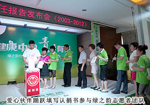 “每個夢想都值得灌溉,眼淚變成雨水就能落下來,每個孩子都應(yīng)該被寵愛,他們是我們的未來……”在綠之韻員工與希望小學(xué)孩子們動人的歌聲與舞蹈里,我們更能感到現(xiàn)場愛心傳遞的感動。綠之韻副總經(jīng)理何健代表公司對最先涌現(xiàn)的一批綠之韻愛心志愿者先進(jìn)代表進(jìn)行了表彰。并與企業(yè)代表,經(jīng)銷商志愿者代表一同上臺莊嚴(yán)宣誓:嚴(yán)格遵守國家相關(guān)法律,拒絕傳銷,共同建設(shè)和諧社會,共同將履行社會責(zé)任進(jìn)行到底。現(xiàn)場愛心經(jīng)銷商踴躍填寫“綠之韻志愿者認(rèn)捐書”積極參與“每天一元錢活動”,支援綠之韻公益責(zé)任事業(yè)。