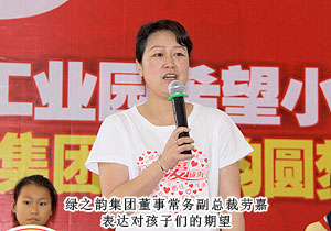 綠之韻集團(tuán)董事常務(wù)副總裁勞嘉表示:綠之韻始終關(guān)注著社會(huì)公益事業(yè),關(guān)注孩子們的成長(zhǎng),幫助孩子實(shí)現(xiàn)自己的學(xué)習(xí)夢(mèng)想。從捐獻(xiàn)希望小學(xué),給孩子們一個(gè)寬敞明亮的學(xué)習(xí)環(huán)境,到今天綠韻圓夢(mèng)?書(shū)香助學(xué)活動(dòng),我們捐獻(xiàn)書(shū)籍,滿(mǎn)足孩子們的學(xué)習(xí)熱情。綠之韻將始終以一個(gè)民族企業(yè)的責(zé)任要求自己,造福社會(huì),為社會(huì)發(fā)展貢獻(xiàn)自己的力量。