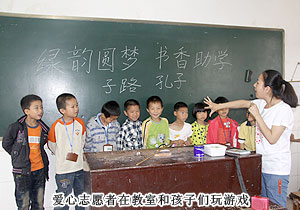 圖書(shū)館捐贈(zèng)活動(dòng)結(jié)束后,綠之韻愛(ài)心志愿者、黨支部成員還和小朋友一起走進(jìn)教室,讀書(shū)、唱歌、寫(xiě)字、做游戲。孩子們高興的與愛(ài)心志愿者開(kāi)展互動(dòng),提前感受到了“六一”兒童節(jié)的快樂(lè)。
