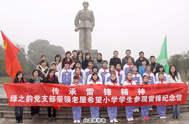 陽(yáng)春三月,是向雷鋒同志學(xué)習(xí)的日子。為更好地將雷鋒精神發(fā)揚(yáng)光大,2012年3月19日,綠之韻黨支部帶領(lǐng)綠之韻老屋希望小學(xué)學(xué)生參觀了位于望城縣雷鋒鎮(zhèn)的湖南雷鋒紀(jì)念館,與孩子們共同了解雷鋒、走近雷鋒、學(xué)習(xí)雷鋒,爭(zhēng)做雷鋒精神傳人。綠之韻國(guó)際大酒店貴賓樓執(zhí)行總經(jīng)理刁琳、綠之韻集團(tuán)黨支部書(shū)記許達(dá)仲參加了此次活動(dòng)。