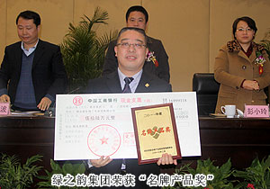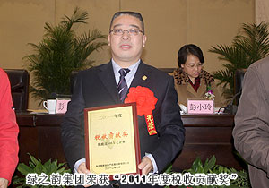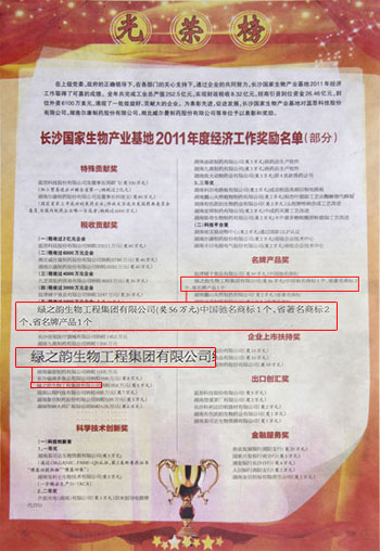 2012年2月28日,長(zhǎng)沙國(guó)家生物產(chǎn)業(yè)基地經(jīng)濟(jì)工作會(huì)議在瀏陽(yáng)市人民政府行政中心隆重召開(kāi)。湖南省經(jīng)信委黨組成員、副主任殷林波,湖南省發(fā)改委黨組成員、總經(jīng)濟(jì)師楊世芳等各級(jí)領(lǐng)導(dǎo)出席會(huì)議并發(fā)表重要講話。會(huì)上,綠之韻集團(tuán)榮獲“2011年度稅收貢獻(xiàn)獎(jiǎng)”“名牌產(chǎn)品獎(jiǎng)”“統(tǒng)計(jì)工作先進(jìn)單位”多項(xiàng)殊榮;綠之韻集團(tuán)員工陳英榮獲“統(tǒng)計(jì)工作先進(jìn)個(gè)人”及“財(cái)務(wù)管理先進(jìn)工作者”稱(chēng)號(hào);易利群榮獲“統(tǒng)計(jì)工作先進(jìn)個(gè)人”稱(chēng)號(hào)。綠之韻集團(tuán)董事長(zhǎng)胡國(guó)安出席領(lǐng)獎(jiǎng)并接受產(chǎn)業(yè)基地下達(dá)的2012年目標(biāo)管理任務(wù)書(shū)。