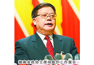 受政協(xié)湖南省第十屆委員會(huì)常務(wù)委員會(huì)的委托,湖南省政協(xié)主席胡彪向大會(huì)作了工作報(bào)告。報(bào)告從6個(gè)方面回顧總結(jié)了一年來(lái)我省政協(xié)工作取得的主要成績(jī):認(rèn)真學(xué)習(xí)貫徹中央和省委重要精神;政治協(xié)商程序化進(jìn)一步推進(jìn);參政議政成效進(jìn)一步顯現(xiàn);民主監(jiān)督組織化程度進(jìn)一步提高;愛(ài)國(guó)統(tǒng)一戰(zhàn)線進(jìn)一步鞏固;政協(xié)工作科學(xué)化水平進(jìn)一步提升。