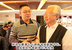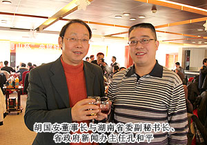 2011年12月16日上午,“央媒?湘企”深化“走轉(zhuǎn)改”座談會暨“御品德山懷”央媒好新聞頒獎儀式在長沙普瑞溫泉大酒店舉行,來自中央70多家新聞單位駐湘記者站的100余名媒體負責人、記者、近20名湘企代表匯聚一堂,共同為深化新聞單位“走基層、轉(zhuǎn)作風、改文風”活動進行探討。原湖南省政協(xié)主席、中央新聞單位駐湘記者分會榮譽會長王克英,湖南省委副秘書長、省委宣傳部副部長李發(fā)美,省委副秘書長、省政府新聞辦主任孔和平等領導出席儀式并為獲獎者頒獎。綠之韻集團胡國安董事長應邀出席會議并與在座媒體代表及各企業(yè)家展開座談討論。