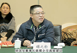 為積極響應由中宣部、中央外宣辦、國家廣電總局、新聞出版總署、中國記協(xié)五部門對新聞戰(zhàn)線開展的“走基層、轉(zhuǎn)作風、改文風”活動部署,綠之韻集團與三一、中聯(lián)、德山酒業(yè)等企業(yè)代表對央媒走基層提出了許多建設性意見,熱切期盼央媒把深化“走轉(zhuǎn)改”活動與主題宣傳、熱點引導和輿論監(jiān)督結(jié)合起來。與會央媒代表也紛紛表示,在今后的“走轉(zhuǎn)改”活動中,將在“深、廣、實”上下功夫,“深”入企業(yè)研究問題,用“走轉(zhuǎn)改”方式增強企業(yè)新聞吸引力,“廣”就是接觸企業(yè)的方方面面,采訪企業(yè)的一線工人,多聽取一線工人的呼聲,“實”就是要重建設性報道,幫助企業(yè)解決實際問題。胡國安董事長在座談會上對多年來各媒體單位對企業(yè)的支持表示衷心感謝,并就企業(yè)與媒體關系的建立及交流提了許多建議,希望媒企合作更加緊密,媒體單位深入開展“走轉(zhuǎn)改”,多為湖南實現(xiàn)“兩個加快”鼓與呼。
