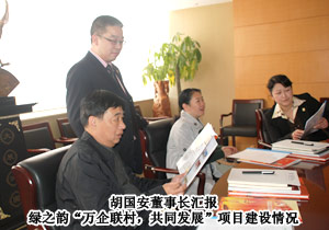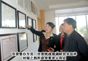 2011年11月23日,長沙市委統(tǒng)戰(zhàn)部常務(wù)副部長劉映群,市委督辦專員、市委統(tǒng)戰(zhàn)部調(diào)研員吳忠祥一行蒞臨綠之韻集團(tuán)考察調(diào)研,就綠之韻“萬企聯(lián)村,共同發(fā)展”省級優(yōu)秀示范項目建設(shè)進(jìn)行工作指導(dǎo),綠之韻集團(tuán)董事長胡國安、董事常務(wù)副總裁勞嘉陪同考察。