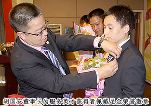 “綠之韻五年服務(wù)英才”是此次大會最受關(guān)注的獎項(xiàng),也是綠之韻集團(tuán)對員工的高度認(rèn)可和最好的獎勵。胡國安董事長為獲獎的24名服務(wù)英才頒發(fā)香港周大福珠寶公司特約設(shè)計(jì)師量身定做的、鐫刻獲獎?wù)呙值淖憬饦s譽(yù)徽章和獎金。五年來,他們與綠之韻同舟共濟(jì)、艱苦創(chuàng)業(yè),在崗位上勤勤懇懇、任勞任怨,參與、見證綠之韻一路走來的發(fā)展歷程,將綠之韻的成長歲月與自己的青春年華融為一體,無論遇到任何環(huán)境的改變,從未改變他們的熱情、闖勁,一直在綠之韻發(fā)展的道路上傾情奉獻(xiàn)!