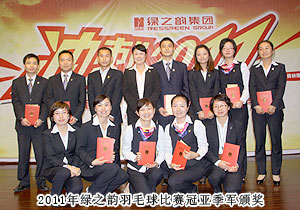 快樂工作,幸福生活是綠之韻人不懈追求的。綠之韻第四屆羽毛球比賽在胡國安董事長的親自帶領(lǐng)下,大家展現(xiàn)出敢于拼搏,決不放棄,力拼到底的綠之韻精神。會上,綠之韻集團(tuán)董事常務(wù)副總裁勞嘉為獲得冠亞季軍的運(yùn)動健兒和優(yōu)秀集體頒獎。綠之韻精神不僅表現(xiàn)在賽場上,在本職工作中集團(tuán)員工更是將其充分體現(xiàn)。市場一線的精英們在沖鋒陷陣,開疆拓土,而作為前線支持的后勤人員擔(dān)負(fù)的責(zé)任就是服務(wù)。真正為市場一線提供做為后方的支持是所有綠之韻員工工作的意義和職責(zé)所在。第三季度“綠之韻五星服務(wù)明星及集體”用自己的“愛心、真心、耐心、誠心、恒心”,為前線精英們提供了最有力的支持和保障。綠之韻執(zhí)行總經(jīng)理龔振為此次獲獎的高素丹、喻鳴鸞、曹玉及優(yōu)秀服務(wù)集體企劃新聞部頒獎。