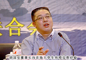 此外,胡總還為在座的委員及學(xué)生免費贈送書籍《財富第六波》,向大家展示了新型創(chuàng)業(yè)方式,以啟迪在座大學(xué)生在未來的發(fā)展道路上注重創(chuàng)新。在場的一位大學(xué)生,捧著這本書認(rèn)真翻看:“本來我對自己將來從事什么行業(yè)還沒有一個清晰的認(rèn)識和定位,但參加活動,我得到了很多啟發(fā)。”在聽完胡國安董事長及其它青聯(lián)委員的報告后,有同學(xué)表示:“企業(yè)家的報告挺精彩的,雖然有些方面現(xiàn)在還不能夠完全聽明白,但我認(rèn)為只要能記住幾句話,就可以對自己產(chǎn)生很大的影響。”