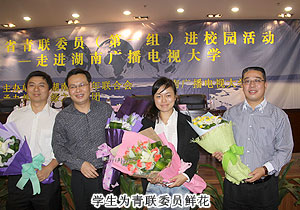 湖南電視廣播大學(xué)校長杜純梓首先致歡迎辭,并介紹了湖南電視廣播大學(xué)發(fā)展至今所取得的成績。湖南省青聯(lián)副主席、省直機關(guān)工委副書記李愛武對此次活動的舉辦給予了充分的肯定,希望廣大青年學(xué)生認(rèn)真學(xué)習(xí)青聯(lián)委員的優(yōu)秀品格和豐富人生閱歷,在成長成才道路上勤于實踐、勇攀高峰。