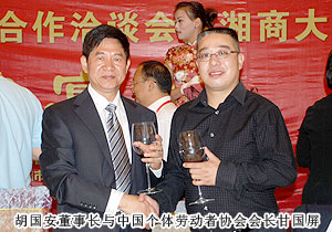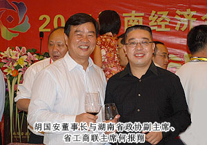 2011年9月28日,2011湖南省經濟合作洽談會暨湘商大會在衡陽隆重召開,來自國內23個省的54個代表團、42家各地商會的3000余名代表共赴盛會。全國政協原副主席毛致用、中共湖南省委常委、常務副省長于來山、國家工商總局副局長鐘攸平,中國個體勞動者協會會長甘國屏、湖南省政協副主席、省工商聯主席何報翔等各級領導出席開幕式。應湖南省工商聯、衡陽市人民政府的邀請,中國青年企業(yè)家協會常務理事、湖南省青年企業(yè)家協會副會長、2009中國十大杰出湘商、綠之韻集團董事長胡國安出席大會。