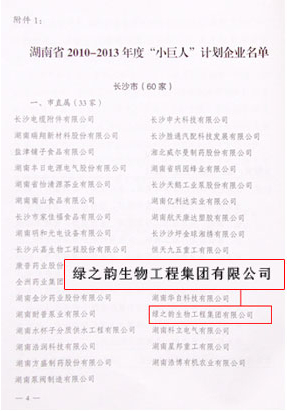 依據(jù)《中華人民共和國中小企業(yè)促進(jìn)法》,并進(jìn)一步貫徹落實湖南省委、省政府確定的工業(yè)強省戰(zhàn)略,推進(jìn)“四千工程”和“兩型”社會建設(shè)的要求,近日,湖南省經(jīng)濟(jì)和信息化委員會隆重公布了湖南省“小巨人”計劃和“創(chuàng)業(yè)”計劃企業(yè)名單,在長沙市直屬33家“小巨人”計劃企業(yè)中,綠之韻集團(tuán)榜上有名。