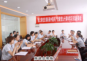 下午,綠之韻黨支部慶祝中國(guó)共產(chǎn)黨建立90周年學(xué)習(xí)交流座談會(huì)召開(kāi)。綠之韻爭(zhēng)先創(chuàng)優(yōu)活動(dòng)小組顧問(wèn)馮紅、綠之韻黨支部書(shū)記許達(dá)仲以及集團(tuán)優(yōu)秀共產(chǎn)黨員、預(yù)備黨員、團(tuán)員、入黨積極分子參加座談會(huì)。會(huì)上,每一位參會(huì)成員進(jìn)行了思想?yún)R報(bào),并投票選舉了兩名在各項(xiàng)活動(dòng)中積極發(fā)揮先鋒模范作用的典型代表羅婷、黃姣為優(yōu)秀共產(chǎn)黨員。綠之韻黨支部書(shū)記許達(dá)仲深情回顧了中國(guó)共產(chǎn)黨的發(fā)展歷程,他表示:從南湖紅船到八一槍聲,從井岡號(hào)角到長(zhǎng)征壯歌,從抗日烽煙到建國(guó)大業(yè),從改革春風(fēng)到小康藍(lán)圖,90年波瀾壯闊,90年壯麗輝煌。沒(méi)有共產(chǎn)黨,就沒(méi)有新中國(guó),我們要緊緊簇?fù)碓阽牭跺N頭圖案的光輝旗幟下,銘記歷史,奮勇前進(jìn)。