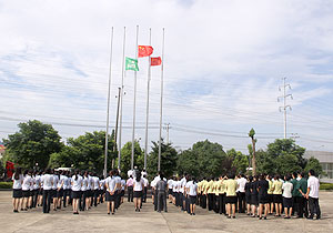 上午九點(diǎn)整,在綠之韻集團(tuán)總部前坪,莊嚴(yán)肅穆的升旗儀式隆重舉行。綠之韻集團(tuán)董事長(zhǎng)胡國(guó)安、董事常務(wù)副總裁勞嘉率集團(tuán)總部員工、綠之韻國(guó)際大酒店員工共同為中國(guó)共產(chǎn)黨90華誕獻(xiàn)禮!當(dāng)中華人民共和國(guó)國(guó)歌奏響,國(guó)旗、黨旗、司旗冉冉上升,全體綠之韻人肅然起敬,一種自豪感、驕傲感油然而生。胡國(guó)安董事長(zhǎng)向偉大的中國(guó)共產(chǎn)黨送上誠(chéng)摯的生日祝福,他說(shuō),中國(guó)共產(chǎn)黨的發(fā)展歷程艱苦而卓絕,留給了我們一筆取之不盡用之不竭的精神財(cái)富,我們每一位企業(yè)黨員都應(yīng)牢牢記住,時(shí)刻發(fā)揚(yáng)共產(chǎn)黨不怕艱難,勇于進(jìn)取的精神,為祖國(guó)的發(fā)展貢獻(xiàn)力量!