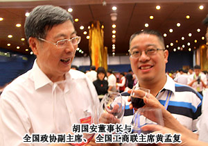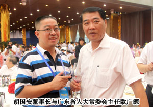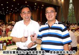 2011年6月27-28日,廣州白云國(guó)際會(huì)議中心商賈云集、盛況空前,由廣東省人民政府與中華全國(guó)工商業(yè)聯(lián)合會(huì)共同舉辦的廣東與全國(guó)知名民營(yíng)企業(yè)合作發(fā)展共促轉(zhuǎn)型升級(jí)大會(huì)暨合作項(xiàng)目簽約儀式在廣州白云國(guó)際會(huì)議中心隆重舉行。中共中央政治局委員、廣東省委書記汪洋、全國(guó)政協(xié)副主席、全國(guó)工商聯(lián)主席黃孟復(fù),中共中央統(tǒng)戰(zhàn)部副部長(zhǎng),全國(guó)工商聯(lián)黨組書記、第一副主席全哲洙,廣東省委副書記、省長(zhǎng)黃華華,廣東省人大常委會(huì)主任歐廣源,廣東省政協(xié)主席黃龍?jiān)频瘸鱿瘯?huì)議以及歡迎晚宴。綠之韻集團(tuán)董事長(zhǎng)胡國(guó)安作為中國(guó)優(yōu)秀民營(yíng)企業(yè)家以及湖南省轉(zhuǎn)型升級(jí)突出企業(yè)代表應(yīng)邀出席此次會(huì)議。