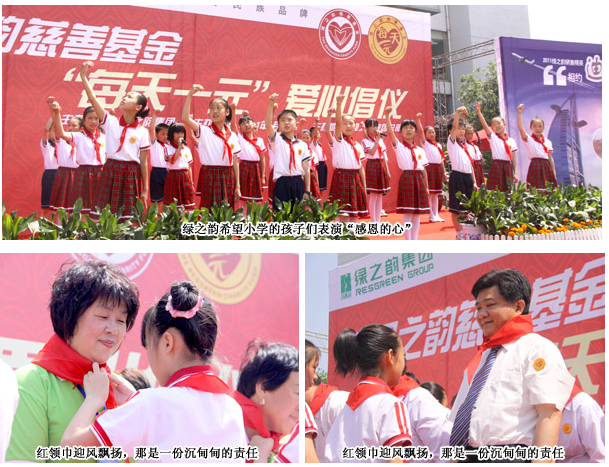 在“每天一元”慈善倡議活動現(xiàn)場,共青團長沙市委副書記詹萍萍為胡國安董事長頒發(fā)長沙市青少年發(fā)展基金會理事牌匾,并發(fā)表講話,充分肯定了綠之韻集團在發(fā)展企業(yè)的同時積極開展各類公益慈善活動的善舉。綠之韻集團董事常務(wù)副總裁勞嘉就今年山東和內(nèi)蒙古兩所希望小學(xué)向長沙市青少年發(fā)展基金會理事長羊舒麟遞交希望工程捐贈支票,羊舒麟理事長代表長沙市青少年發(fā)展基金會為綠之韻集團頒發(fā)希望工程貢獻單位獎牌匾。現(xiàn)場,由綠之韻老屋希望小學(xué)的學(xué)生現(xiàn)場表演的手語歌舞《感恩的心》將現(xiàn)場氣氛推向高潮,希望小學(xué)的孩子們?yōu)樯綎|和內(nèi)蒙古兩地愛心經(jīng)銷商上臺佩戴紅領(lǐng)巾,愛心大使們給學(xué)生贈送精美的文具,愛心的芬芳充溢現(xiàn)場。綠之韻重教樂捐愛心代表申文高、王連坤現(xiàn)場進行了“感恩事業(yè) 回報社會”的分享,贏得現(xiàn)場陣陣充滿敬意的掌聲。