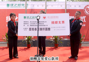 作為民族品牌的代表,綠之韻一直以踐行企業(yè)社會(huì)責(zé)任為己任,在社會(huì)公益事業(yè)中積極發(fā)揮自身作用,向社會(huì)慈善捐贈(zèng)款物已近2000萬元。近期,綠之韻第八所希望小學(xué)還將在內(nèi)蒙古地區(qū)落成。綠之韻集團(tuán)將與青基會(huì)持續(xù)合作,積極創(chuàng)設(shè)愛心載體,不斷拓寬資助渠道,用事業(yè)的壯大回報(bào)社會(huì),推動(dòng)公司慈善工作躍上一個(gè)新臺(tái)階。綠之韻“愛”的文化也將隨著綠之韻事業(yè)的發(fā)展而溫暖、幫助更多需要幫助的人。