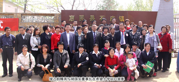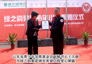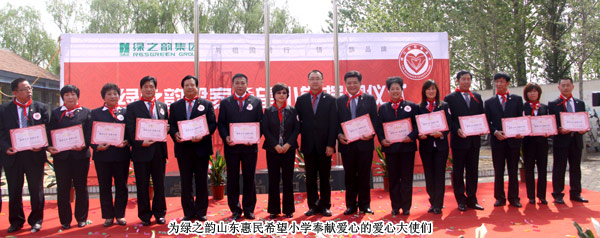2011年4月29日,由山東省青少年發(fā)展基金會(huì)牽頭、綠之韻集團(tuán)出資建設(shè)的“綠之韻惠民梁家希望小學(xué)”在“孫子故里”山東惠民縣揭牌成立。山東省青年少發(fā)展基金會(huì)副秘書長(zhǎng)王太麗、共青團(tuán)濱州市委書記張志華、惠民縣人大常委會(huì)副主任張秀葵等政府領(lǐng)導(dǎo)出席揭牌儀式。綠之韻集團(tuán)胡國(guó)安董事長(zhǎng)、綠之韻市場(chǎng)營(yíng)銷管理中心總經(jīng)理劉彥明、綠之韻慈善基金總執(zhí)行戴曉彥、山東分公司經(jīng)理梁涌及綠之韻山東地區(qū)愛心經(jīng)銷商共同為愛傳承,為孩子們送上人間四月天的融融暖意。