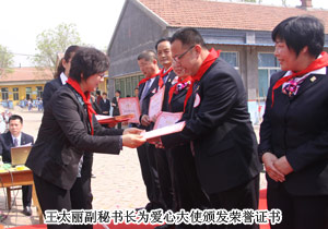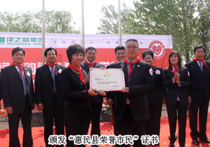 山東省青少年基金會(huì)副秘書長(zhǎng)王太麗接受捐贈(zèng),并對(duì)綠之韻集團(tuán)對(duì)社會(huì)的人文關(guān)懷表示肯定。惠民縣人大常委會(huì)副主任張秀奎與綠之韻集團(tuán)胡國(guó)安董事長(zhǎng)共同為希望小學(xué)揭牌,并向胡國(guó)安董事長(zhǎng)頒發(fā)了惠民縣榮譽(yù)市民證書。