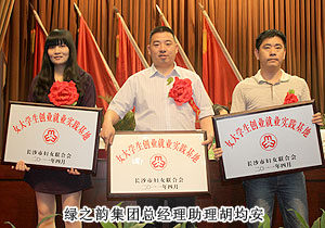 近年來,長沙市各級(jí)組織和單位緊緊圍繞市委、市政府打造“創(chuàng)業(yè)之都”和創(chuàng)建全國創(chuàng)業(yè)型城市的總體目標(biāo),以“創(chuàng)業(yè)富民、巾幗示范在行動(dòng)”為載體,積極實(shí)施創(chuàng)業(yè)就業(yè)促進(jìn)行動(dòng),在全市組織開展了“巾幗創(chuàng)業(yè)示范基地”、“女大學(xué)生創(chuàng)業(yè)就業(yè)實(shí)踐基地”的評選活動(dòng)。2011年4月28日,綠之韻集團(tuán)被長沙市婦女聯(lián)合會(huì)評選為長沙市“女大學(xué)生創(chuàng)業(yè)就業(yè)實(shí)踐基地”。中共長沙市委常委、統(tǒng)戰(zhàn)部長虢正貴、副市長何寄華等市級(jí)領(lǐng)導(dǎo)出席本次會(huì)議并頒發(fā)榮譽(yù)牌匾,長沙市婦聯(lián)黨組書記、主席譚慧慧作工作報(bào)告。