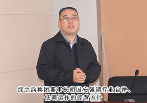 綠之韻集團(tuán)董事長(zhǎng)胡國(guó)安在會(huì)上發(fā)表講話,向各位領(lǐng)導(dǎo)的蒞臨和指導(dǎo)表示熱烈的歡迎和誠(chéng)摯的感謝,同時(shí)表明綠之韻集團(tuán)將繼續(xù)貫徹落實(shí)相關(guān)法律法規(guī),秉承“行業(yè)自律,低調(diào)運(yùn)作”的經(jīng)營(yíng)方針,積極配合各級(jí)部門的打傳工作,為維護(hù)社會(huì)穩(wěn)定不斷努力。