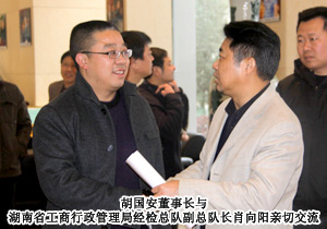 考察組一行首先聽取了綠之韻集團(tuán)企業(yè)發(fā)展、產(chǎn)品規(guī)劃、市場(chǎng)建設(shè)等方面的工作介紹,隨后,又就新形勢(shì)下的直銷企業(yè)規(guī)范管理工作與綠之韻集團(tuán)董事長(zhǎng)胡國(guó)安、董事常務(wù)副總裁勞嘉作了深度交流。綠之韻董事常務(wù)副總裁勞嘉對(duì)湖南省十四州市工商系統(tǒng)一直以來(lái)對(duì)綠之韻集團(tuán)的關(guān)心支持表示感謝,同時(shí),對(duì)2011年綠之韻在分公司建設(shè)、服務(wù)網(wǎng)點(diǎn)建設(shè)、直銷區(qū)域增設(shè)等工作作了匯報(bào);胡國(guó)安董事長(zhǎng)就綠之韻發(fā)展歷程、產(chǎn)業(yè)定位、社會(huì)責(zé)任等方面工作的開展誠(chéng)懇邀請(qǐng)各工商主管部門領(lǐng)導(dǎo)給予監(jiān)督指導(dǎo)。