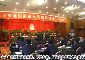湖南省紀委副書記趙均田對全省地稅系統(tǒng)黨風廉政建設和反腐敗工作所取得的成績給予充分肯定,要求全省地稅系統(tǒng)反腐倡廉工作充分認識做好黨風廉政建設和反腐敗工作的重要性和緊迫性;以改革創(chuàng)新精神不斷推進黨風廉政建設和反腐敗工作邁上新的臺階。省地稅局黨組書記、局長呂興勝要求全省地稅系統(tǒng)深入貫徹“以人為本、執(zhí)政為民”的執(zhí)政理念,堅決落實中央、省委和國家稅務總局關于黨風廉政建設工作的一系列決策部署。切實抓好黨風廉政建設責任制落實,加大查處違法違紀案件的工作力度,充分發(fā)揮紀檢監(jiān)察部門的重要職能,力爭反腐倡廉工作實現(xiàn)新發(fā)展。