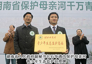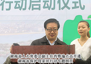 共青團湖南省委書記張值恒主持儀式。啟動儀式上,由大學生、中小學生、青年企業(yè)家、青年農(nóng)民、青年工人、青年科技人員組成的6個代表方陣,分別莊嚴地進行了保護母親河綠色承諾。湖南省人民政府副秘書長石華清為保護母親河行動青少年生態(tài)監(jiān)護站和監(jiān)督崗授牌;湖南省委副秘書長龔文密為汪涵、曾軼可、王櫟鑫等行動公益大使頒發(fā)聘書;湖南省政協(xié)副主席武吉海為環(huán)保社團聯(lián)盟授旗;湖南省人大常委會副主任肖雅瑜點擊開通湖南省保護母親河行動專題網(wǎng)頁。儀式最后,汪涵等公益大使接過梅克保副書記授予的環(huán)保接力棒跑出會場,拉開了湖南省保護母親河環(huán)保接力活動的序幕,隨后140名接力選手代表全省14個市州環(huán)繞橘洲公園先后接力。
