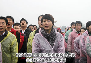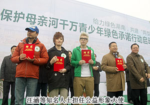 2011年3月5日,長沙橘子洲公園青年毛澤東藝術(shù)雕塑廣場上人聲鼎沸,彩旗飄揚,湖南省保護母親河(湘江)千萬青少年綠色承諾行動啟動儀式隆重舉行。中共湖南省委副書記梅克保、湖南省人大常委會副主任肖雅瑜、湖南省政協(xié)副主席武吉海等領(lǐng)導(dǎo)出席啟動儀式。綠之韻集團董事長胡國安身為湖南省青年企業(yè)家協(xié)會副會長,積極響應(yīng)此次活動,委派董事長助理戴曉彥代表綠之韻全體員工及經(jīng)銷商出席并莊重許下保護母親河的綠色承諾。湖南省保護母親河領(lǐng)導(dǎo)小組各成員單位、青少年代表和中央、省、市新聞界朋友近千人共同參與。