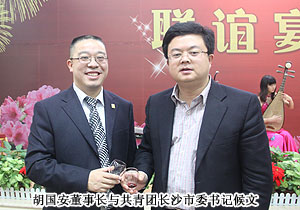 2010年12月27日,湖南省長(zhǎng)沙市青年企業(yè)家協(xié)會(huì)第三次會(huì)員代表大會(huì)暨聯(lián)誼宴會(huì)在長(zhǎng)沙楓林賓館舉行,來(lái)自全市各行業(yè)200多位企業(yè)家歡聚一堂,參與工作交流以及換屆選舉工作。綠之韻集團(tuán)董事長(zhǎng)胡國(guó)安先生作為湖南省優(yōu)秀青年企業(yè)家應(yīng)邀參與此次會(huì)議。