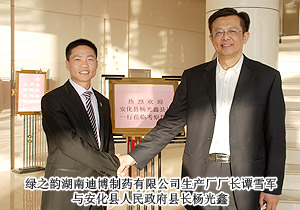 為貫徹湖南省委、省政府加快醫(yī)藥產(chǎn)業(yè)發(fā)展的相關(guān)指示精神,長(zhǎng)沙國(guó)家生物產(chǎn)業(yè)基地與湖南益陽(yáng)安化縣人民政府達(dá)成合作協(xié)議,正式啟動(dòng)益陽(yáng)安化中藥產(chǎn)業(yè)園建設(shè)項(xiàng)目。2010年12月22日,長(zhǎng)沙國(guó)家生物產(chǎn)業(yè)基地管理委員會(huì)就開(kāi)發(fā)與建設(shè)益陽(yáng)安化中藥產(chǎn)業(yè)園召開(kāi)專(zhuān)題會(huì)議,綠之韻集團(tuán)董事長(zhǎng)胡國(guó)安出席此次會(huì)議,并就綠之韻集團(tuán)在未來(lái)五年斥資億元建設(shè)益陽(yáng)安化中藥材種植基地及原材料提取中心與安化縣人民政府、長(zhǎng)沙國(guó)家生物產(chǎn)業(yè)基地正式簽定合作協(xié)議,成為湖南省中醫(yī)藥產(chǎn)業(yè)發(fā)展以及國(guó)家發(fā)改委與商務(wù)部重點(diǎn)扶持項(xiàng)目。