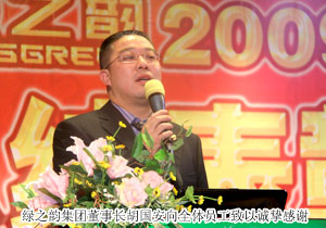 綠之韻集團(tuán)執(zhí)行總經(jīng)理龔振、董事常務(wù)副總經(jīng)理勞嘉、市場(chǎng)總監(jiān)諶獻(xiàn)軍在會(huì)上對(duì)2009年的工作作了總結(jié)并提出2010年工作的整體規(guī)劃。董事長(zhǎng)胡國(guó)安作全年總結(jié)及來(lái)年展望的重要發(fā)言,就2009年度所取得的成績(jī)向全體員工表示誠(chéng)摯的謝意,并向大家致以新年的問(wèn)候。號(hào)召全體員工在觀念、戰(zhàn)略、人力資源、技術(shù)和管理方面繼續(xù)創(chuàng)新,自強(qiáng)不息,勤奮拼搏,把握新一年的機(jī)遇,實(shí)現(xiàn)更大的跨越和發(fā)展。