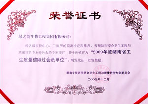 據(jù)悉,“衛(wèi)生質(zhì)量信得過會員單位”是由各級疾控機構(gòu)和衛(wèi)監(jiān)所嚴格按條件從食品、公共場所、健康相關(guān)產(chǎn)品等行業(yè)中評選表彰的。公司嚴格貫徹執(zhí)行國家衛(wèi)生法律法規(guī),健全并落實自身衛(wèi)生管理制度,各項衛(wèi)生指標符合國家衛(wèi)生標準和要求,受到各級衛(wèi)生監(jiān)督部門的好評,經(jīng)湖南省預(yù)防醫(yī)學(xué)會衛(wèi)生工程與質(zhì)量評價專業(yè)委員會組織專家評審,被評為“2009年度湖南省衛(wèi)生質(zhì)量信得過會員單位”。