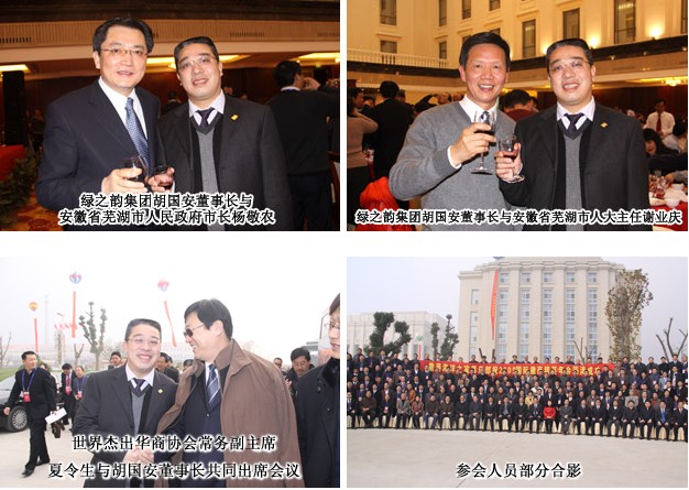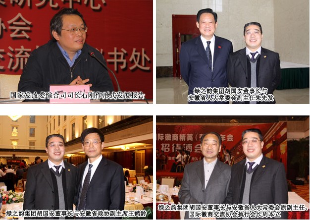 國際徽商精英年會是安徽國際徽商交流協(xié)會舉辦的一年一度的盛會,前四屆分別在北京、博鰲、無錫、合肥舉行。今年的徽商精英年會,安徽省委省政府高度重視,以“新徽商、新機(jī)遇、新發(fā)展”為主題,還特別邀請了世界杰出華商協(xié)會的優(yōu)秀成員出席交流,胡國安董事長作為“世界華商協(xié)會副會長”被邀請出席會議,并在會議期間與安徽省委領(lǐng)導(dǎo)及蕪湖市委領(lǐng)導(dǎo)進(jìn)行親切會談。