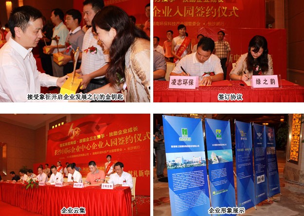 2009年9月27日,湖南環(huán)保科技園長(zhǎng)沙國(guó)際企業(yè)中心企業(yè)簽約入園儀式在湖南長(zhǎng)沙運(yùn)達(dá)•喜來(lái)登大酒店隆重舉行。入園簽約儀式得到了省市區(qū)領(lǐng)導(dǎo)和有關(guān)部門大力支持,各級(jí)領(lǐng)導(dǎo)、長(zhǎng)沙銀行、市青年聯(lián)合會(huì)及意向企業(yè)代表匯聚一堂,共同見(jiàn)證這次具有重要里程碑意義的盛會(huì)。綠之韻集團(tuán)常務(wù)副總經(jīng)理勞嘉女士、湖南綠之韻保健日用品有限公司執(zhí)行總經(jīng)理孫立農(nóng)先生作為此次入園十八家企業(yè)代表出席本次大會(huì),并簽訂入園協(xié)議。